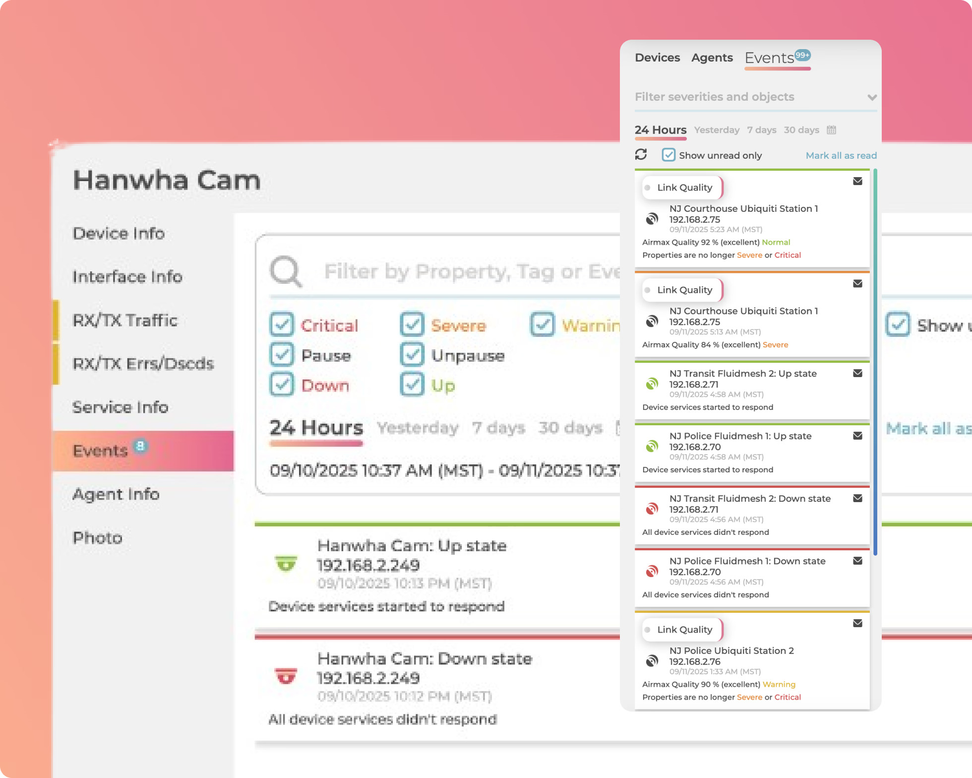 EyeOTmonitor is an AI-powered network and device monitoring platform built to help smart cities stay connected, reliable, and resilient. From transportation and public safety to environmental and utility systems, EyeOTmonitor unifies every piece of connected infrastructure into a single, intelligent view.